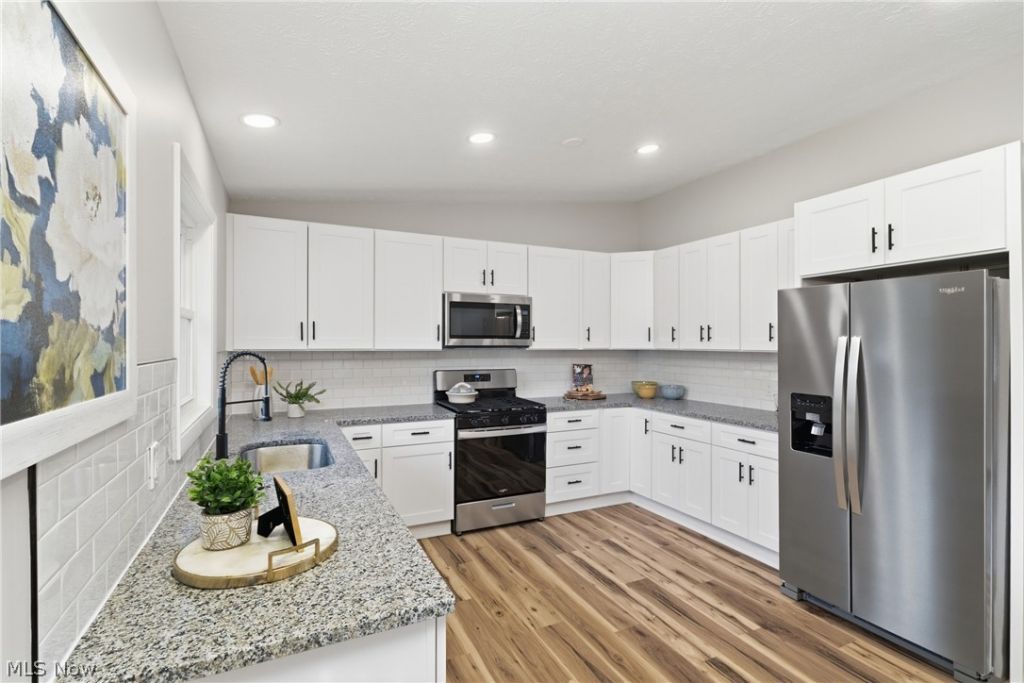 Welcome home to this beautifully renovated split-level set on a large lot with room to spread out inside and out. The main level offers an open, airy layout with a bright living space, dining area, and updated kitchen featuring premium soft-close cabinetry, granite countertops, waterproof LVP flooring, stainless steel appliances, and modern finishes throughout. A beautiful mudroom connects to the attached two-car garage, adding both style and everyday convenience. Upstairs you'll find spacious bedrooms and refreshed bathrooms, while the lower level includes a cozy second living area with a stunning fireplace wall and walk-out access. New windows throughout and a new roof in 2025 add even more value and peace of mind. With its expansive yard, thoughtful updates, and move-in ready appeal, this home is full of charm and function.